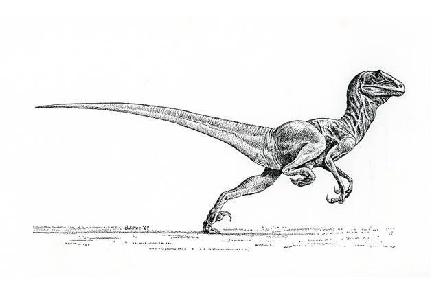 Naming the giant dromaeosaur ("raptor"), Utahraptor ostrommaysorum was just a small bit of my admiration for this great man. In 1990, at the annual meeting of the Society of Vertebrate Paleontology (SVP) in San Diego, when I showed the Bakker the killing claw of Utahraptor; he just blew it off as a crushed Torvosaurus claw, but minutes later, John was swinging it around displaying its size in life and what kind of damage it would have been able to do. He attracted a good crowd in a very Bakkeresk manner (he would hate hearing that).