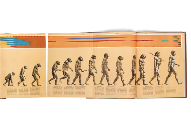 featuresIconic. Almost by accident.Nearly 50 years ago, a Yale graduate created an image that became part of America’s visual vocabulary. Richard Conniff ’73 is the author of The Species Seekers: Heroes, Fools, and the Mad Pursuit of Life on Earth. Geoffrey Giller ’14MESc writes for Scientific American and Audubon. ![]() Rudolph Zallinger ’42BFA, ’71MFA, from Early Man (Time-Life Books, 1965)When the foldout page is closed, this image in the 1965 Time-Life book Early Man, drawn by Rudolph Zallinger ’42BFA, ’71MFA, shows only six steps in human evolution. The image has been endlessly parodied. View full image![]() The complete March of Progress covers four and a half pages, from Pliopithecus, “one of the earliest proto-apes,” to “Modern Man”—who, the text explains, is physically similar to his predecessor, Cro-Magnon man, but set apart by culture: “permanent settlements—and civilizations.”