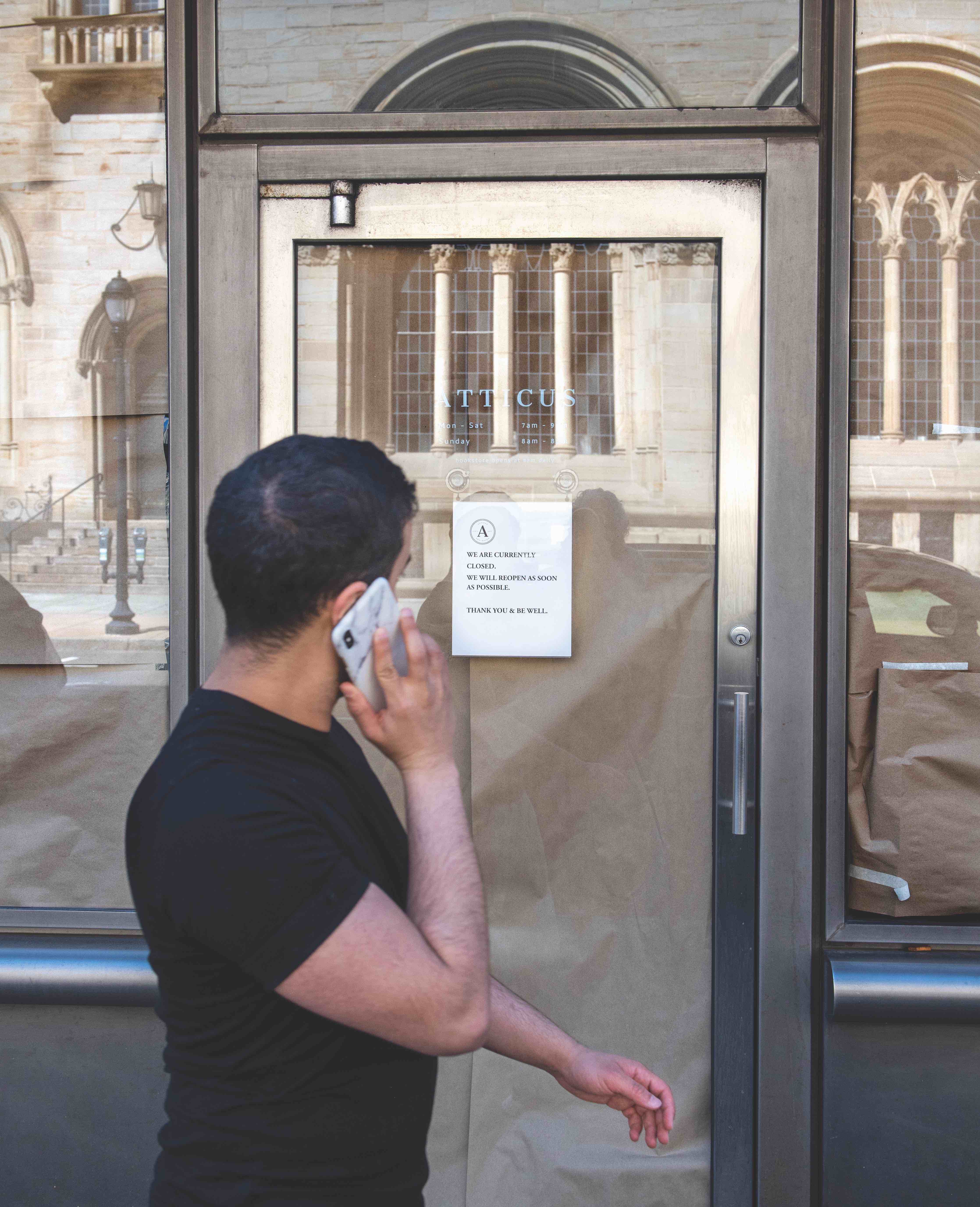 Last LookChangesA sign of the times on Chapel Street. ![]() View full imageBy mid-March, as fear of the coronavirus infiltrated every aspect of life in New Haven, restaurants and bars were closed, students had been told not to return to campus after spring break, and the streets and sidewalks were all but empty. The Yale University Art Gallery, seen here reflected in the glass door of Atticus Bookstore Cafe on Chapel Street, was temporarily shuttered.