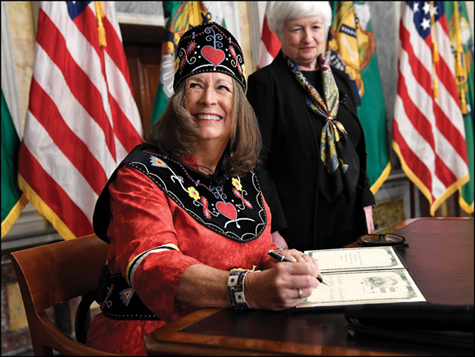 Malerba’s mother’s words have continued to guide her more than a decade later, as she embarks on a new phase of her career as a public servant. On September 12, 2022, Chief Malerba was sworn in as the Treasurer of the United States. The groundbreaking appointment makes her the first Indigenous person to oversee the production and circulation of the money of the United States.
