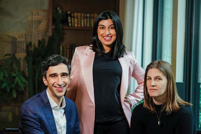 The Budget Lab’s principals, left to right: chief economist Danny Yagan, president Natasha Sarin ’11, and executive director Martha Gimbel.