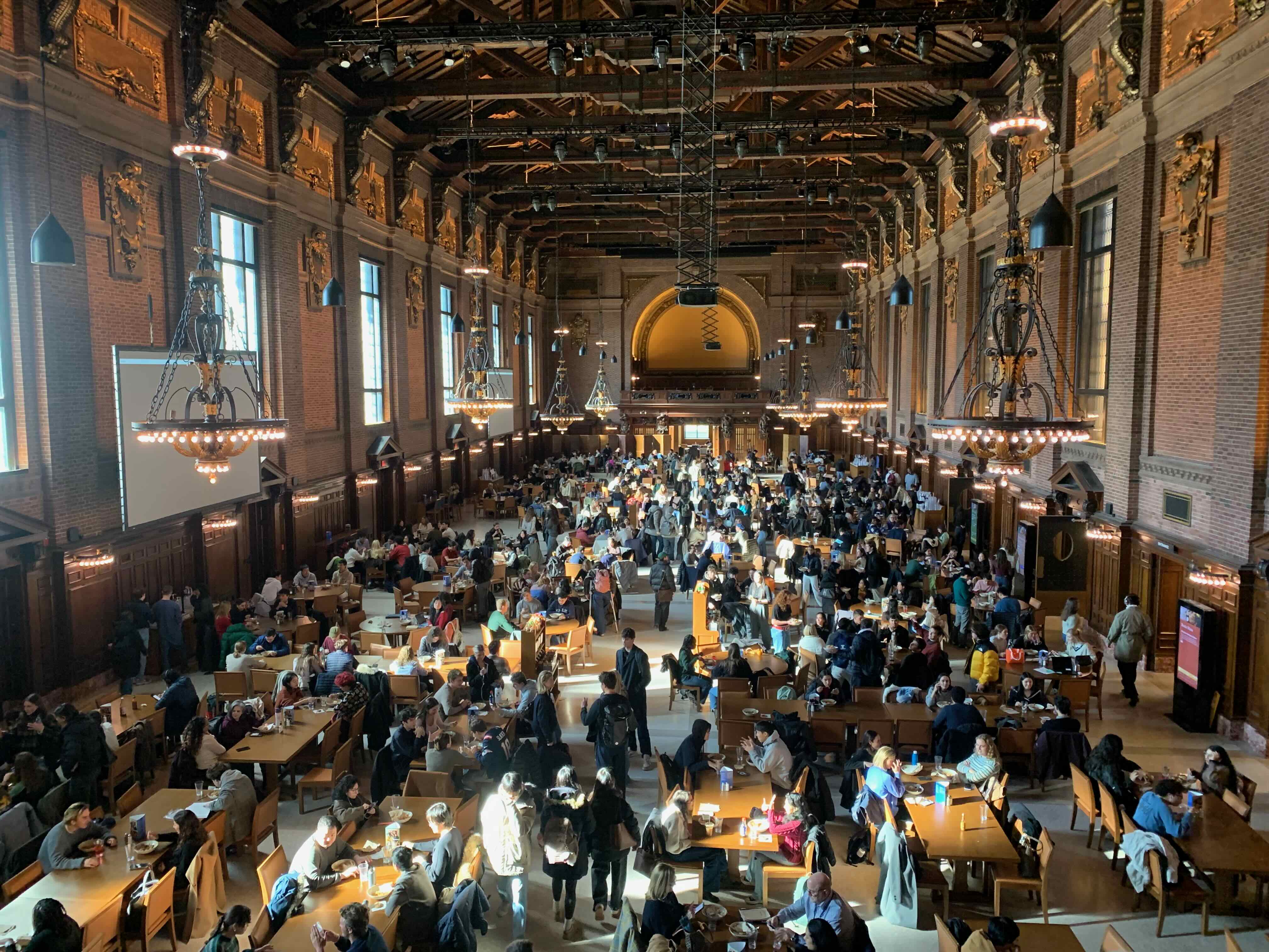 Scene on CampusYalies who lunchCommons is still the place to be for the midday repast. Students flood into Commons on their first day back from winter break. Renovated as part of the creation of the Schwarzman Center, and open to the Yale community as well as visitors for lunch Monday through Thursday, Commons serves more than 5,500 lunches per week. Offerings range from Ragu Alla Pugliese to chimichurri rotisserie chicken and fried tofu. Credit cards, dining points, and Eli Bucks (Yale’s system for dining dollars) accepted.