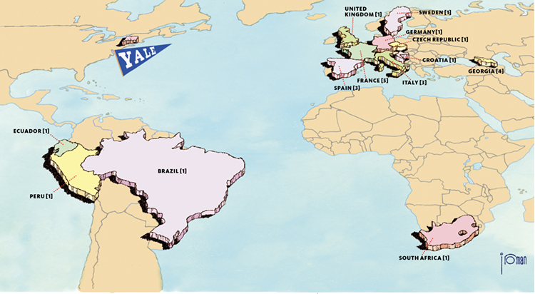 Light & VerityAt home abroadYale offers summer courses in 13 countries. ![]() John RomanView full imageAround 850 to 900 Yale College students earn course credit through study abroad every summer. Most of them enroll in outside programs and earn transfer credit, but the college offers a handful of overseas courses taught by its own faculty. In 2026, Yale Summer Session Programs Abroad has 24 offerings in 13 countries. (See the countries and the number of courses in each one in the map above.) About half are language courses; students can also take an introduction to painting in Florence, try their hand at young-adult fiction in Stockholm, or study both epidemiological methodology and hands-on filmmaking (in the same course) in Cape Town.