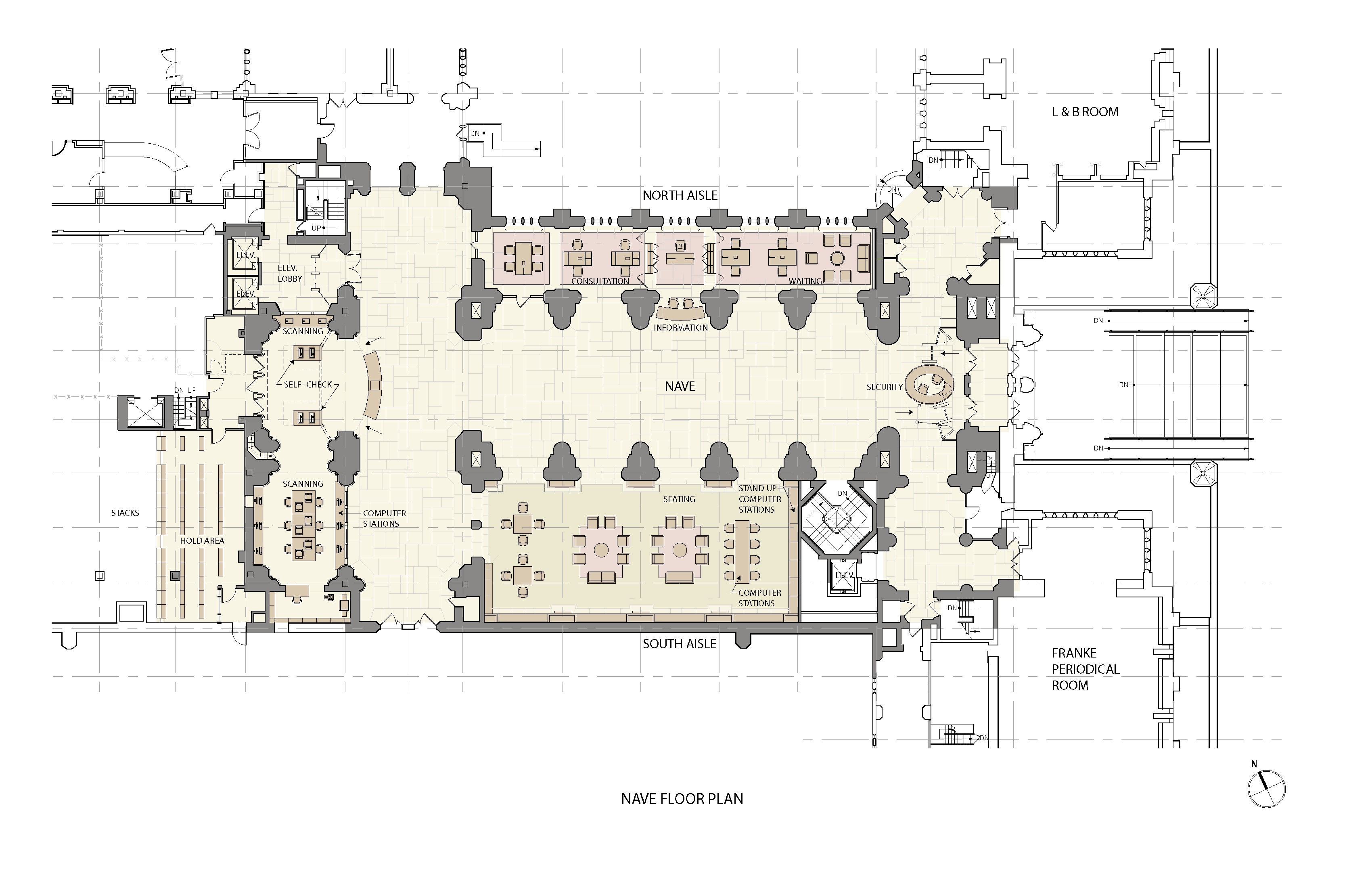 Take a good look at the nave of Sterling Memorial Library this month if you can—you're not going to see it again till the fall of 2014. On June 3, construction work will begin on a project to reconfigure the library services in one of Yale's most iconic spaces and restore the room's stone, stained glass, and woodwork. The project is being funded by a $20 million anonymous donation. While the restoration part of the project looks backward—cleaning the residue of years of cigarette smoke from the stone and bringing the room back to its original appearance—the rearrangement of library services is an effort to join the self-serve twenty-first century. The north aisle (everyone at the library uses terms from church architecture without irony to describe the space), which now has computer workstations, will be the new home for library services that require interaction with employees: securing privileges, paying fines, etc. Those functions will be locked away at night, making it possible to keep the nave itself open late after services are closed. Most remarkably, the “altar” or circulation desk will be breached at both ends, and unordained library users will be allowed to pass through to the stacks behind. A bank of scanners and self-checkout stations will occupy the space behind the altar. Most of the library’s remaining card-catalog cabinets, in the south aisle area, will be removed, leaving only those built into the walls. (They’re all empty, in any case.) That area and a bit of the north aisle will be converted to study space. University librarian Susan Gibbons says that the Bass Library has taught them that “students like see-and-be-seen study spaces.” Library staff are preparing for a year of disruption. In June, scaffolding will go up throughout the nave, and library users will navigate the space via an enclosed walkway. (They ask that we not call it a tunnel.) The cherished librarian's courtyard will be a staging area for the construction and thus inaccesible for the length of the project. Although reading rooms on the first floor of Sterling will remain open, the noise level during the day may be distracting, so the library is using its website to promote other study spaces in the building. And the building's High Street façade, a favorite spot for pictures, will have scaffolding and temporary doors (which means the parade for the October inauguration of Peter Salovey ’86PhD as president will not start from the library as is the custom). Library staff say the project, designed by Helpern Architects, will be completed by September of 2014.
