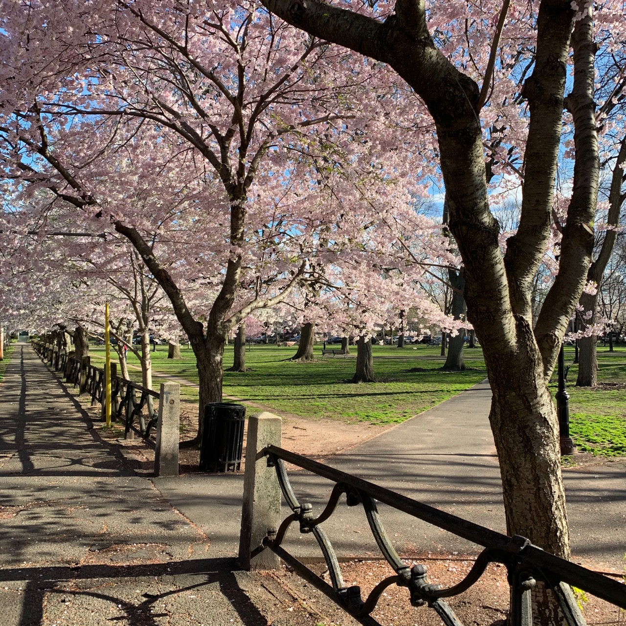 This year’s cherry blossom festival in Wooster Square has been canceled, but someone forgot to tell the cherry blossoms. A few people were in the square this weekend to admire them, but they all practiced impeccable social distancing.