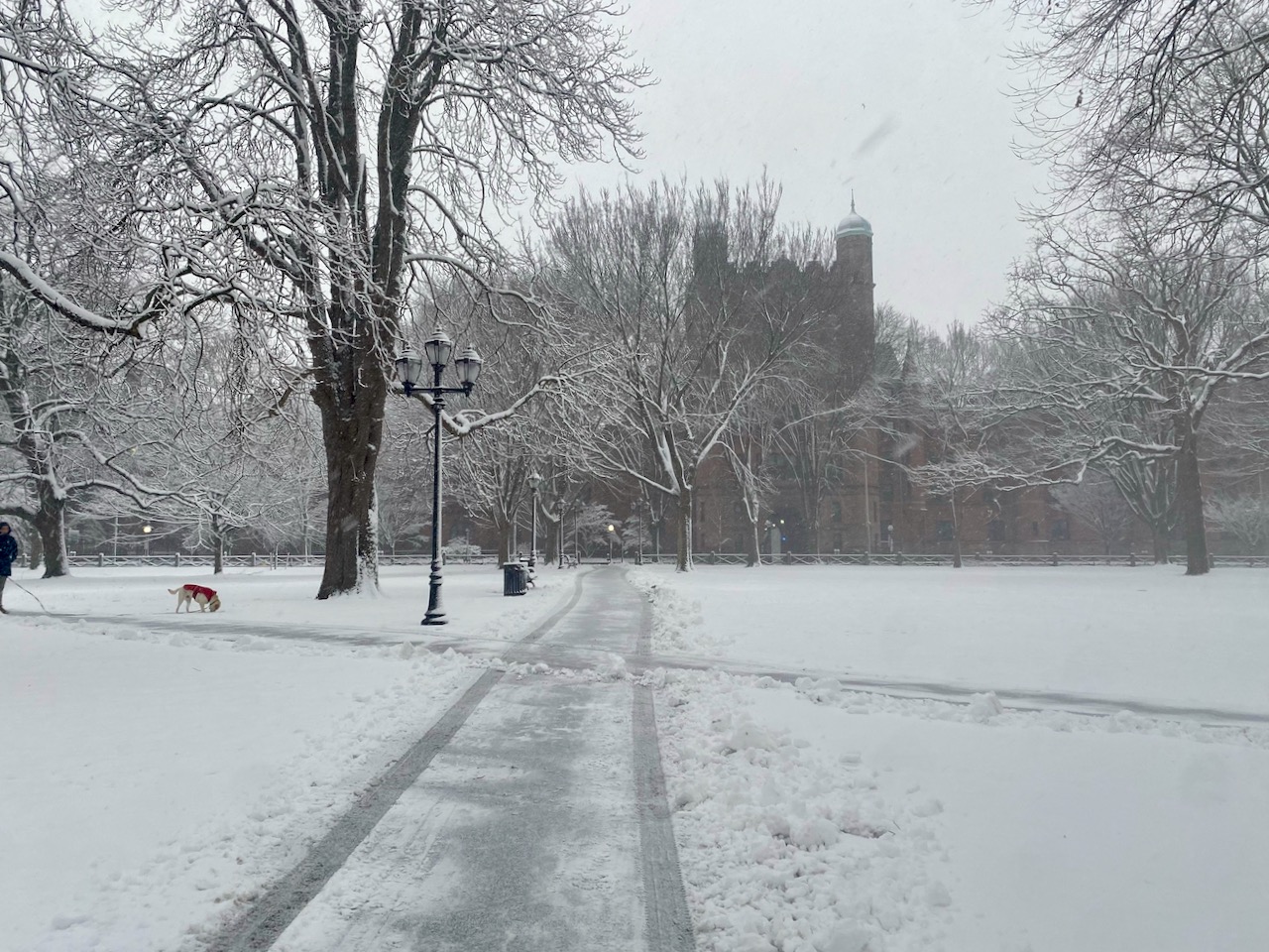 Filed under snow, New Haven Green, Phelps Hall, dogs