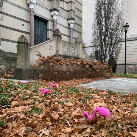 Why were there about a dozen pink flamingos in the front yard of Scroll and Key on Wednesday afternoon? Your guess is as good as ours. And we know from experience that they are unlikely to respond to our inquiries.