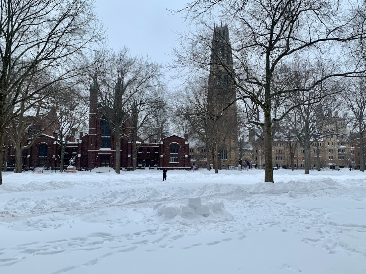 New Haven got about a foot of snow yesterday, and the university is encouraging remote classes and work where possible today. We saw the promising beginnings of an igloo on Old Campus; no word on when the contractor will return to finish the job. |
