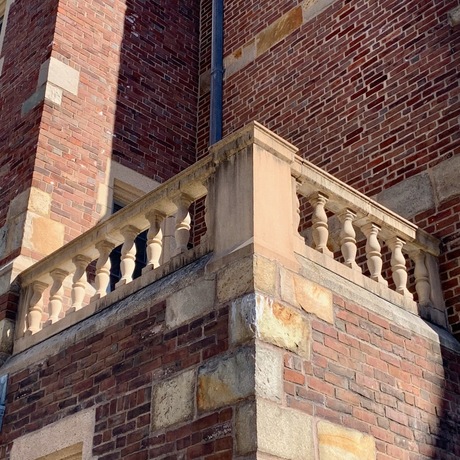 You'll find several balconies on buildings around campus, most of them strictly ornamental as far as we know. You'd have to squeeze through a pretty narrow window to occupy this one; where on campus is it?