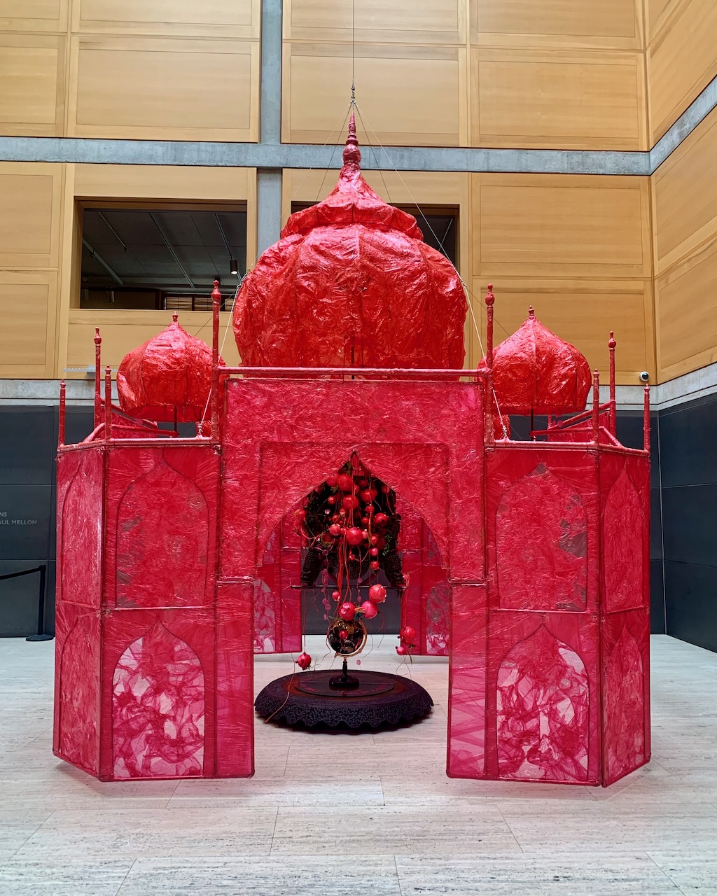 A pink plastic Taj Mahal will dominate the entrance court of the Center for British Art through July 26. Hung from the ceiling and built on a frame of copper and steel, Take me, take me, take me . . . to the Palace of love by Rina Banerjee ’95MFA "subverts typical assumptions about the monument." The center bought the scultpure in 2023.