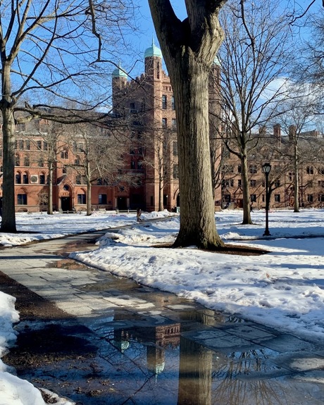 Filed under snow, Old Campus, Phelps Hall, puddles