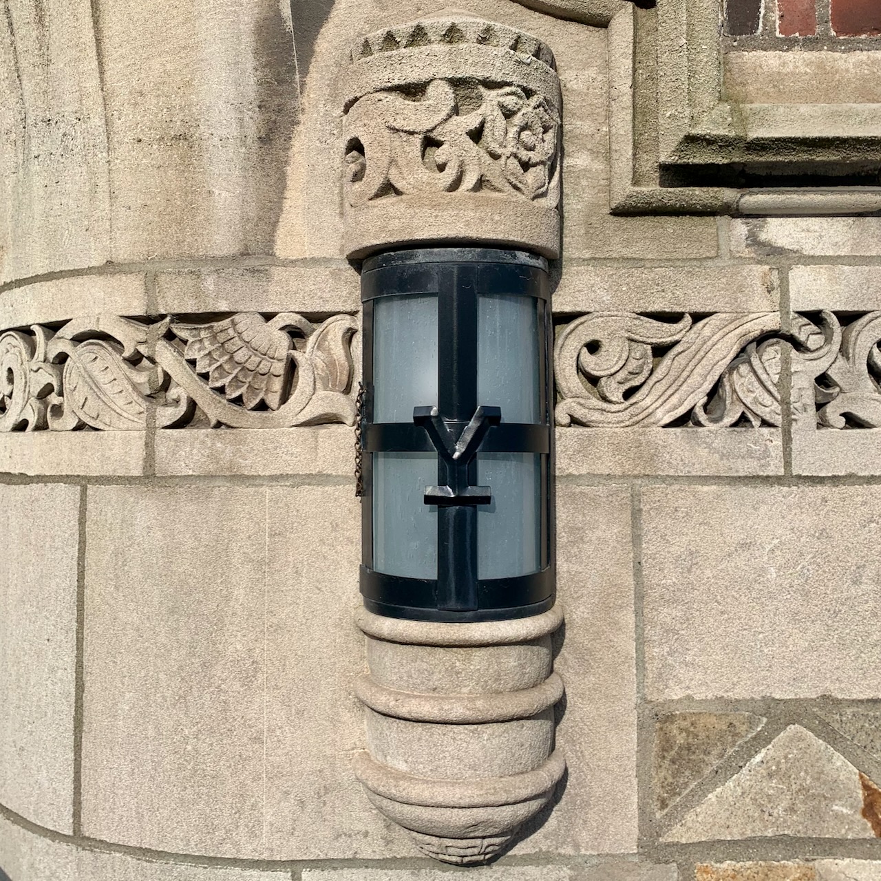 Somewhere on campus we found this light fixture that is proudly wearing its varsity letter. Where is it?