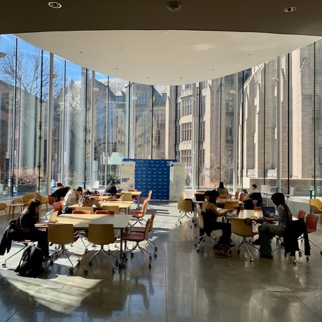Students working in the studio at Tsai CITY this morning had a choice of sun or shade.