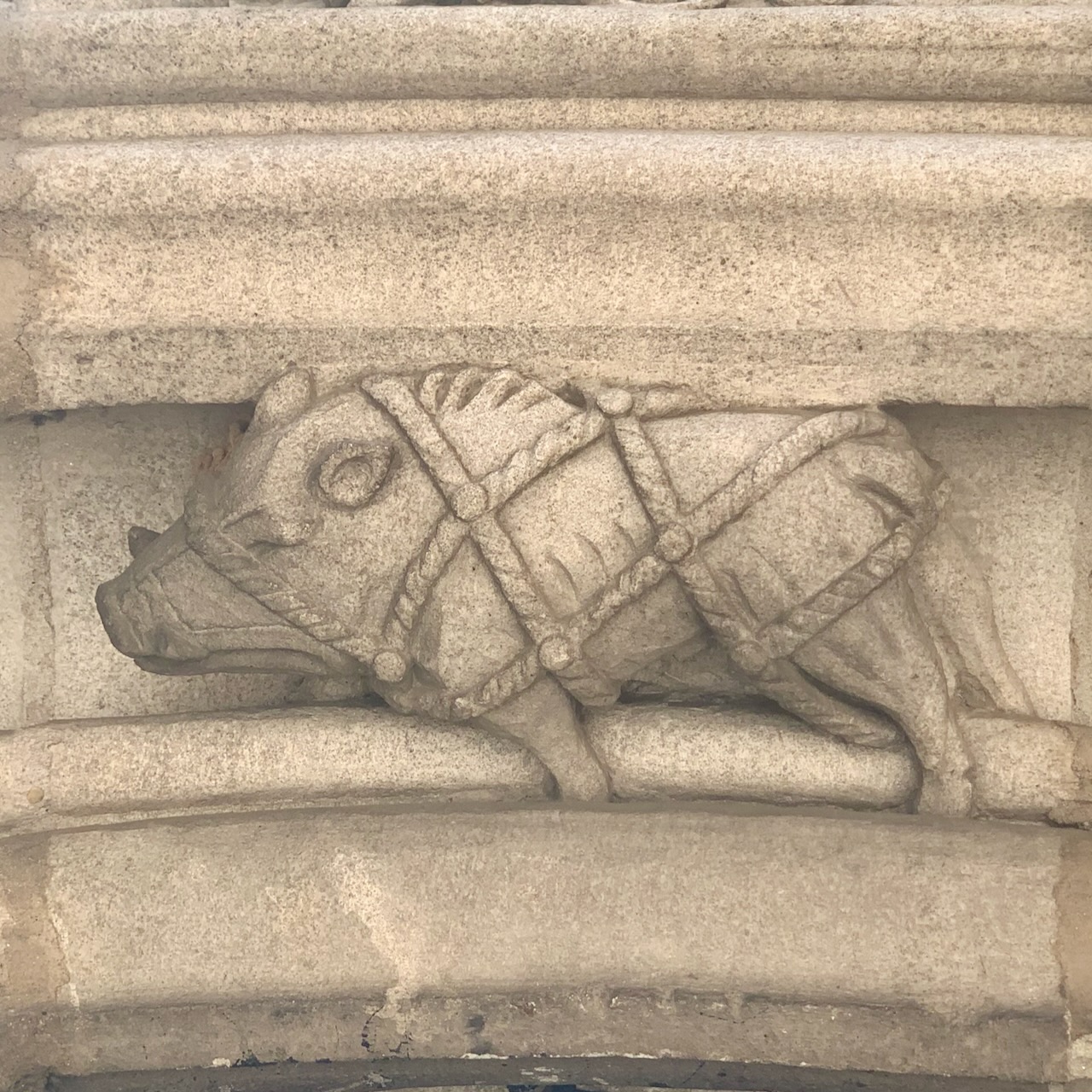 We recently noticed this trussed pig hiding in plain sight after overlooking it for years. Any idea where it is?
