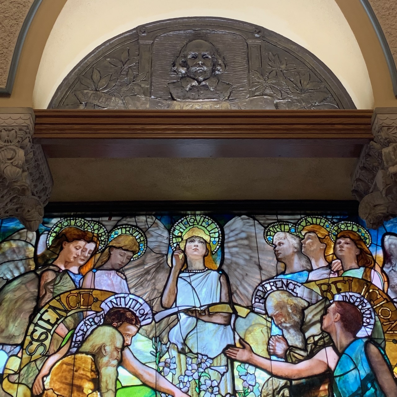 Happy Birthday to William Shakespeare! The Bard of Avon is memorialized above a section of the Tiffany window in Linsly-Chittenden room 102.