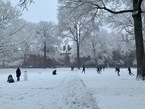There was still a thin, icy layer of snow on Cross Campus yesterday afternoon, but it's not expected to survive warming temperatures later this week. Read on